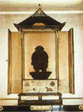 本堂には秘仏大黒天が金張りのお厨子に約24センチほどの小さなお像が安置され、両脇には不動明王と毘沙門天を祀っております。商売繁盛・出世開運など、大黒天のご利益のあらたかな寺として多くの人々に信仰されております。 平成15年、境内に井戸を掘り、大黒天にちなんで「金運清水」と命名。伏見の清酒を仕込む水と同じ水系である清冽な水がこんこんと湧き出し、霊水を求めて多くの人びとが訪れます。 |